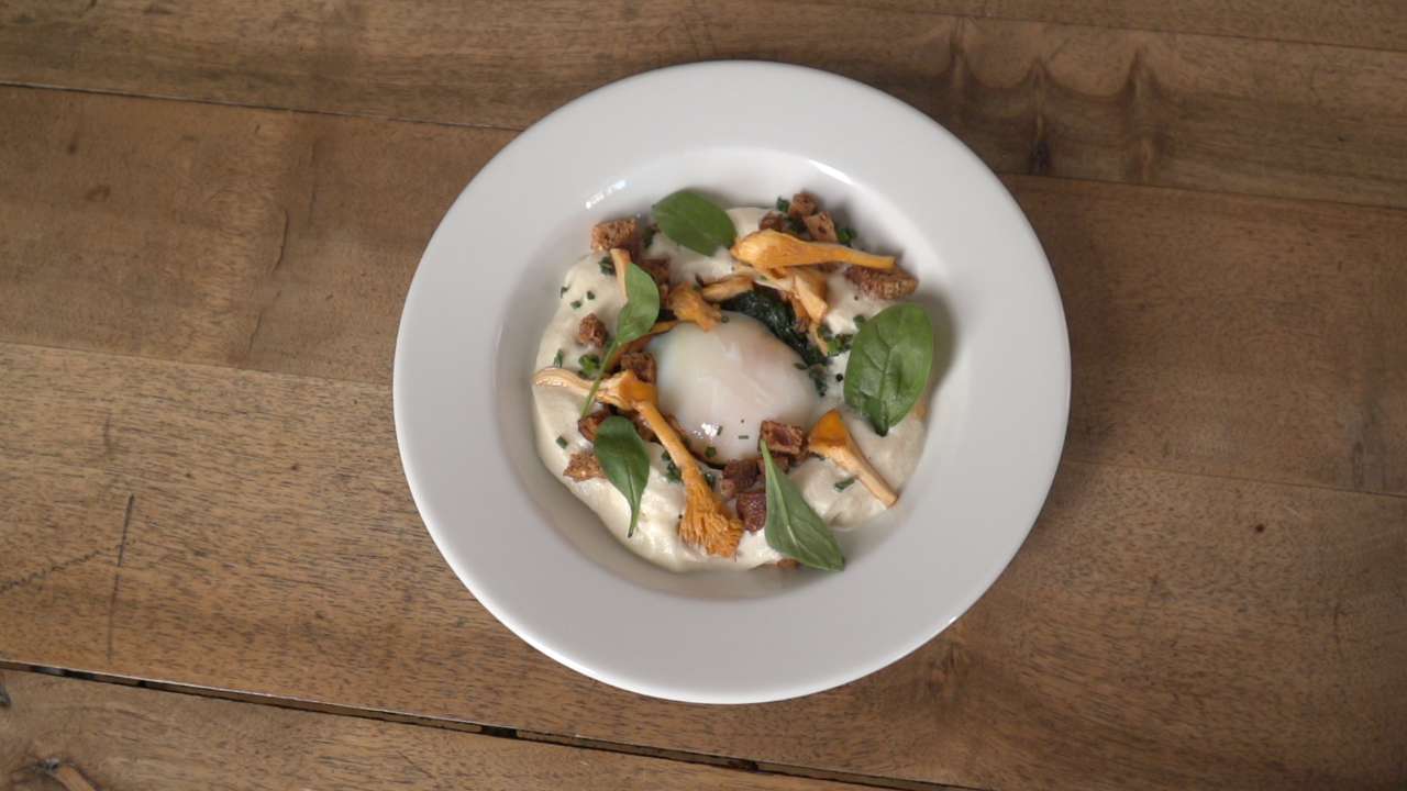 Oeuf basse température, chanterelles, épinards chez David Vigo