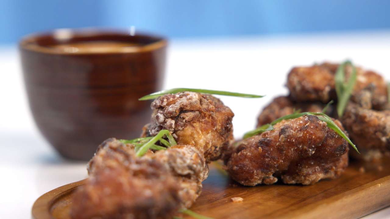 C trop bon la street food, Romain Vuilleumier, directeur et chef au restaurant "La Voile" à Neuchâtel, propose un poulet karaage avec une mayonnaise au sriracha. Incontournable de la street food japonaise, le karaage, bouchées croustillantes et juteuses marinées dans une sauce soja-gingembre, est traditionnellement servi sous forme de snacks. Romain et Brizida Torres nous présentent une recette simple et savoureuse accompagnée d'une mayonnaise au sriracha, sauce à base de piment fermenté.