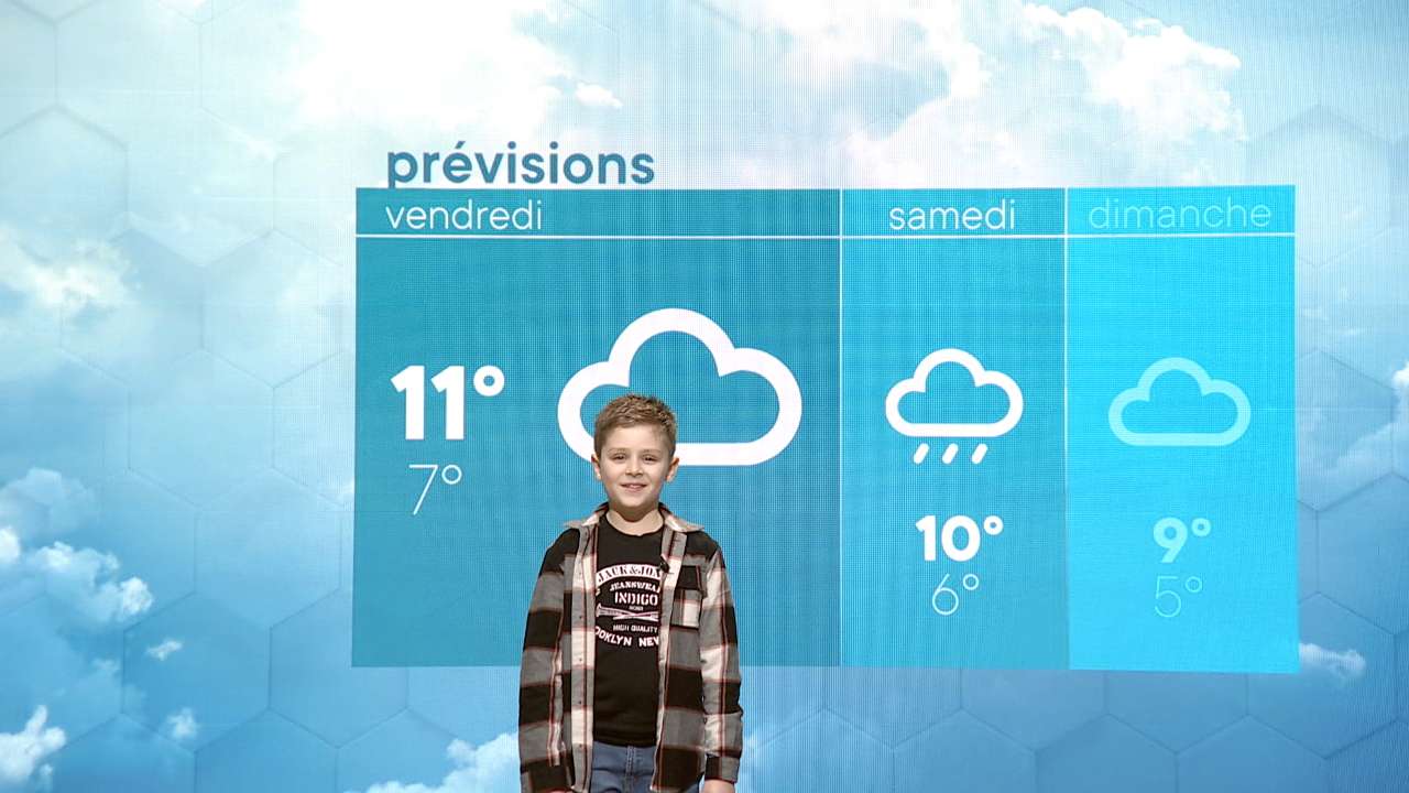 Le mercredi c'est le jour des enfants et le moment pour eux de faire leurs premiers pas devant une caméra de télévision. Ce mercredi, la Météo des Enfants vous est présentée par Ilan. La Météo des Enfants, c'est pour tous les enfants âgés de 8 à 13 ans. en provenance du Jura, Canton de Neuchâtel, Jura-Bernois ou le Nord-Vaudois. Inscription par mail à : meteo@canalalpha.ch