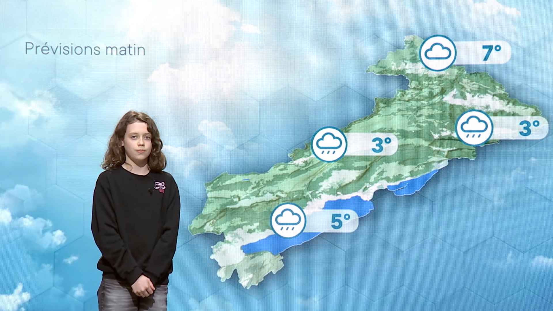 Le mercredi c'est le jour des enfants et le moment pour eux de faire leurs premiers pas devant une caméra de télévision. Ce mercredi, la Météo des Enfants vous est présentée par Juliette. La Météo des Enfants, c'est pour tous les enfants âgés de 8 à 13 ans. en provenance du Jura, Canton de Neuchâtel, Jura-Bernois ou le Nord-Vaudois. Inscription via notre site :www.canalalpha.ch/meteo