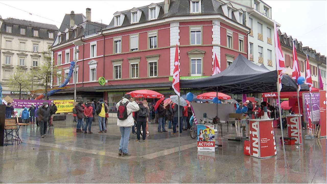 De meilleures conditions pour les "branches essentielles" mises en lumière par la pandémie, l'égalité salariale pour les femmes, ou le climat: les revendications étaient nombreuses pour cette fête du travail aux rassemblements restreints. Les manifestants ont pu défiler au Locle, contrairement à Delémont.