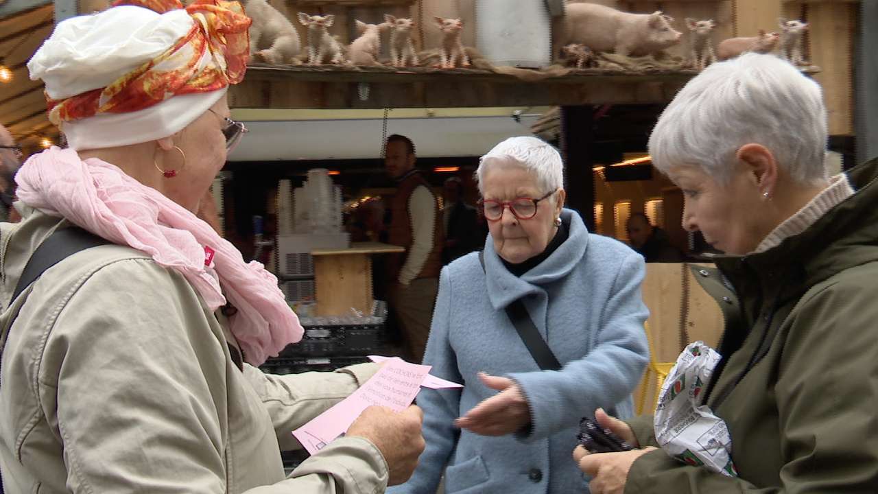 Deux militantes du collectif citoyen "Les 1800 sans Nom" étaient présentes, cet après-midi, au marché de Saint-Martin à Porrentruy.