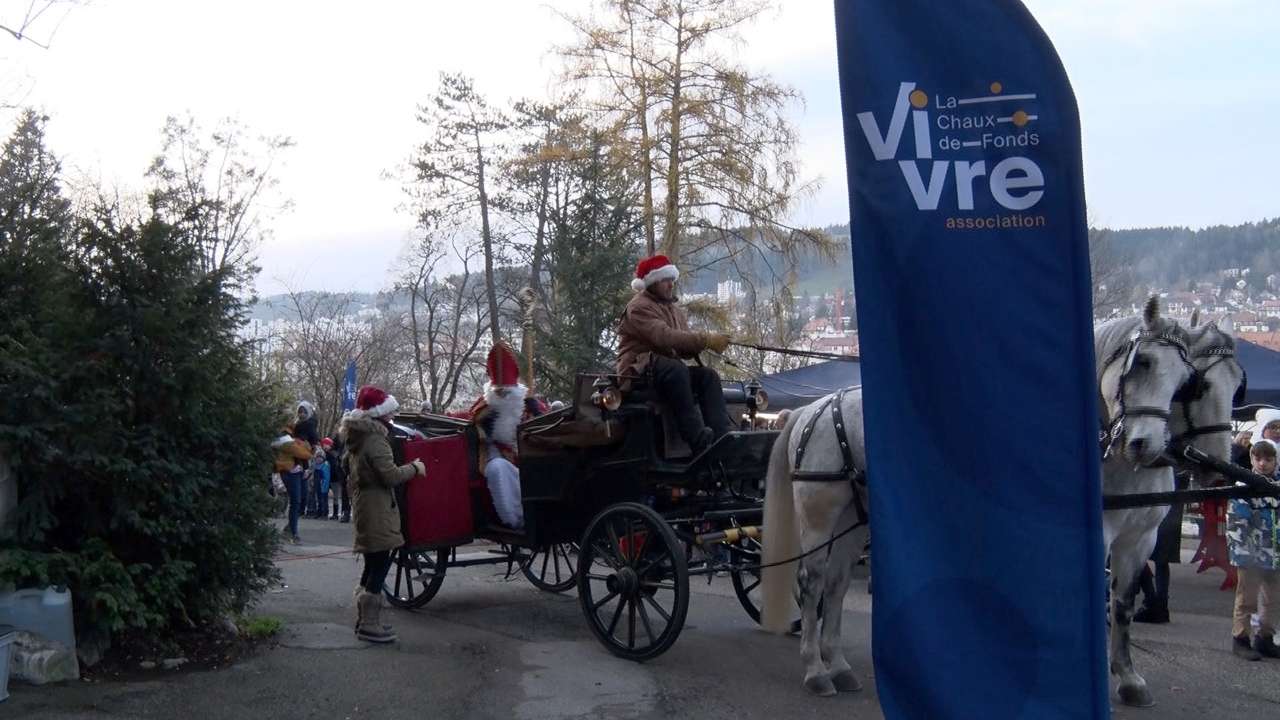 Privilège d'enfant très sage: nous avons pu prendre place à bord de la calèche de Saint-Nicolas, pour son trajet du centre commercial des Entilles jusqu'au parc des Crêtets, samedi, à La Chaux-de-Fonds. A son arrivée, il était très attendu. Plusieurs centaines de personnes étaient présentes pour la manifestation de l'association Vivre La Chaux-de-Fonds.