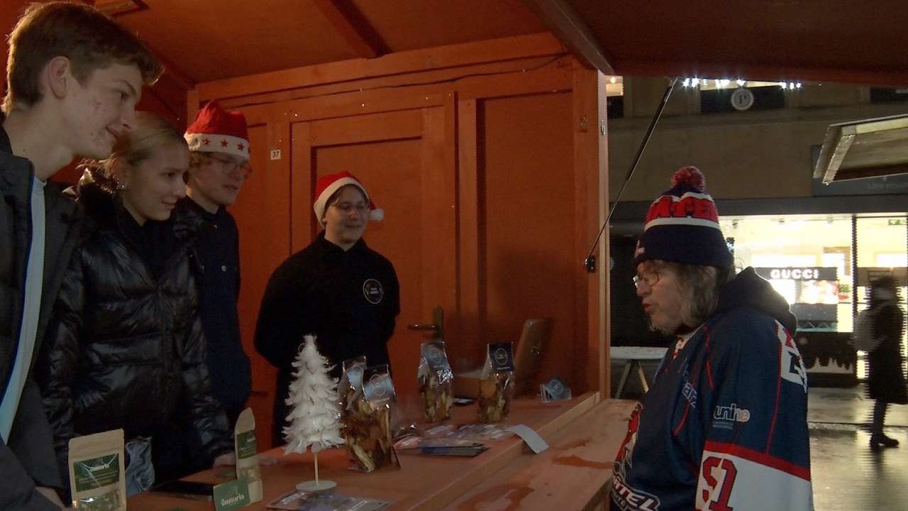 Au milieu du vin chaud, des douceurs et des décorations du Marché de Noël de Neuchâtel, les chips de légumes et les herbes pour aromatiser les pâtes de Vegi Crispy et Gustoria ont réussi à se faire une place de choix. Les deux mini-entreprises du concours national du Company Programme, passent à la réalité du terrain: vendre leurs produits au public. Nous les avons suivi lors de leur première soirée au Marché de Noël de Neuchâtel.