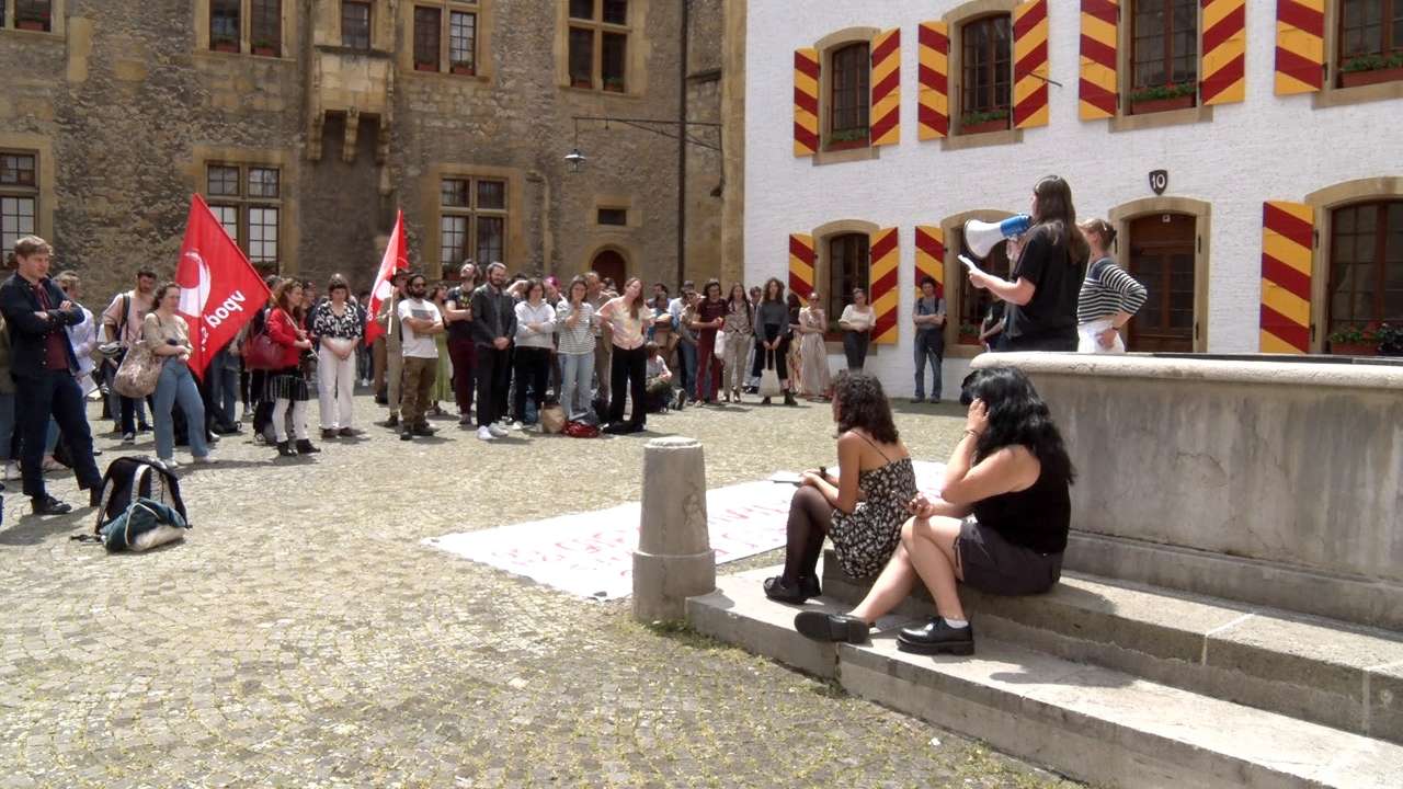 La session du Grand Conseil s’est ouverte cet après-midi. Les députés ont été accueillis dans la cour du château par une centaine de personnes, majoritairement étudiantes. La manifestation portait sur la hausse des taxes universitaires, prévue par le Conseil d’État, qui passeraient ainsi de 425 francs par semestre à 700 francs. Pour les manifestants, une telle proposition est inutile, au vu du montant rapporté et de la charge supplémentaire pour les étudiants.