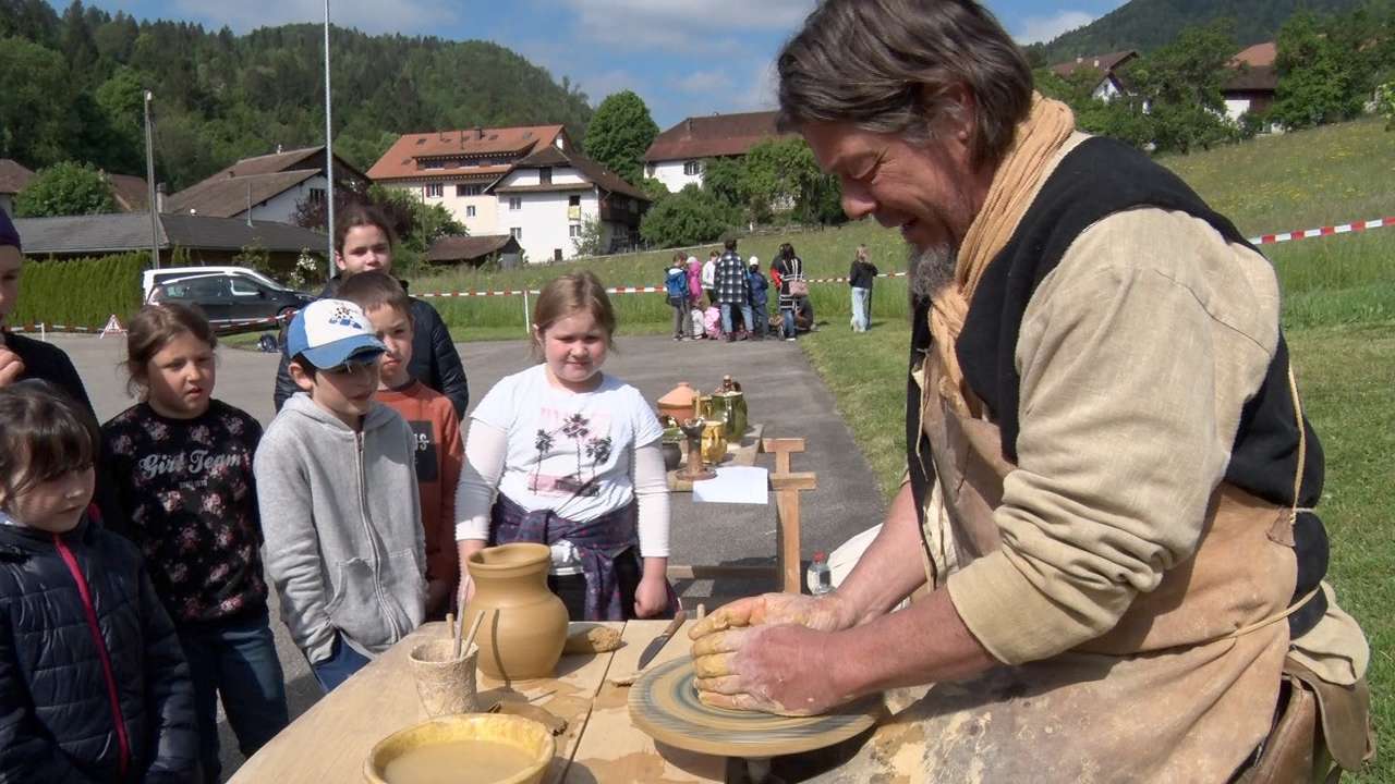 Retour à l’époque du Moyen Âge aujourd’hui pour 140 élèves du Jura bernois. Une journée culturelle sur cette période de l’histoire était organisée sur la place de la halle de gymnastique à Perrefitte. Au programme, pour ces jeunes, de la 1ère à la 11e harmos, 9 ateliers, qui retracent la vie à cette époque, comme par exemple la cuisine, le chant, la poterie ou encore les armes.