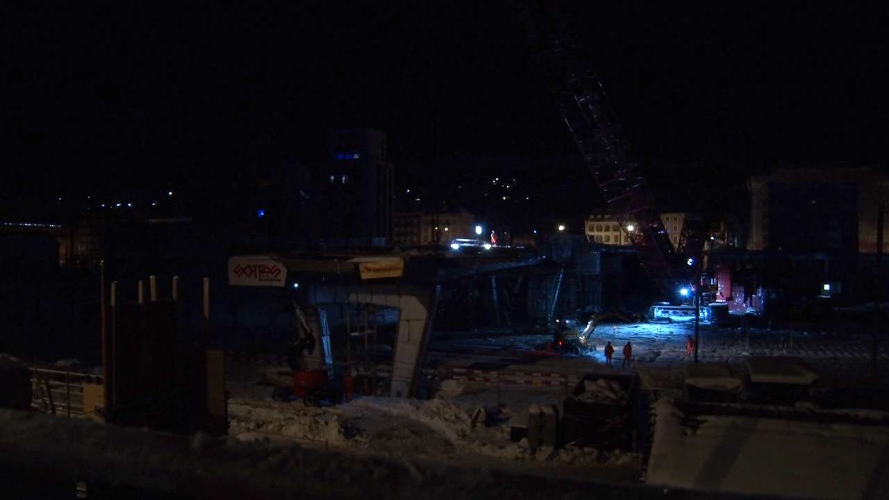 Dès minuit et jusqu'au petit matin, les travaux du Grand-Pont à La Chaux-de-Fonds ont connu une avancée spectaculaire. Un élément métallique, long de 35 mètres, large de 20 mètres et pesant 200 tonnes, a été posé au-dessus des voies de chemin de fer à l'aide d'une autogrue. Débuté en mars 2023, le chantier de remplacement du Grand-Pont avance dans les délais prévus. Cette nuit, toutes les conditions étaient remplies pour la réalisation de ce défi technique.