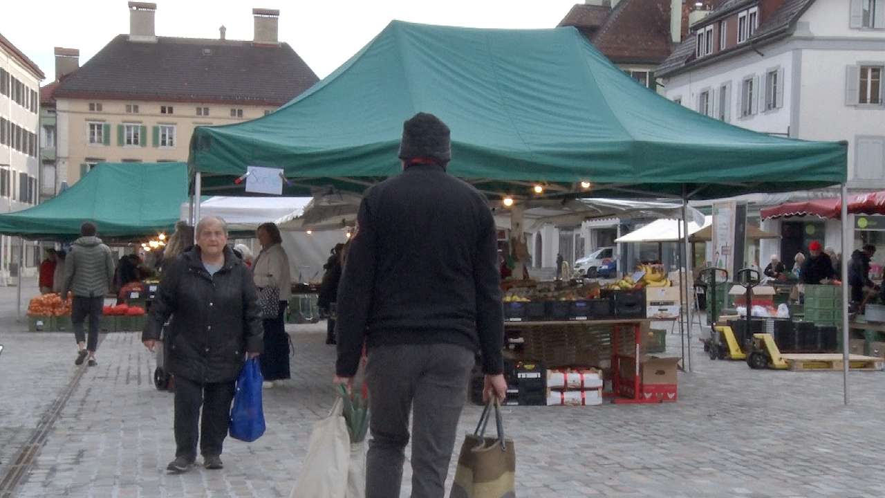 La place du marché à La Chaux-de-Fonds a retrouvé son marché samedi matin. C'était le premier depuis la piétonnisation de la place. On est allé prendre la température auprès des exposants et des passants. La plupart semble ravie de ces changements.