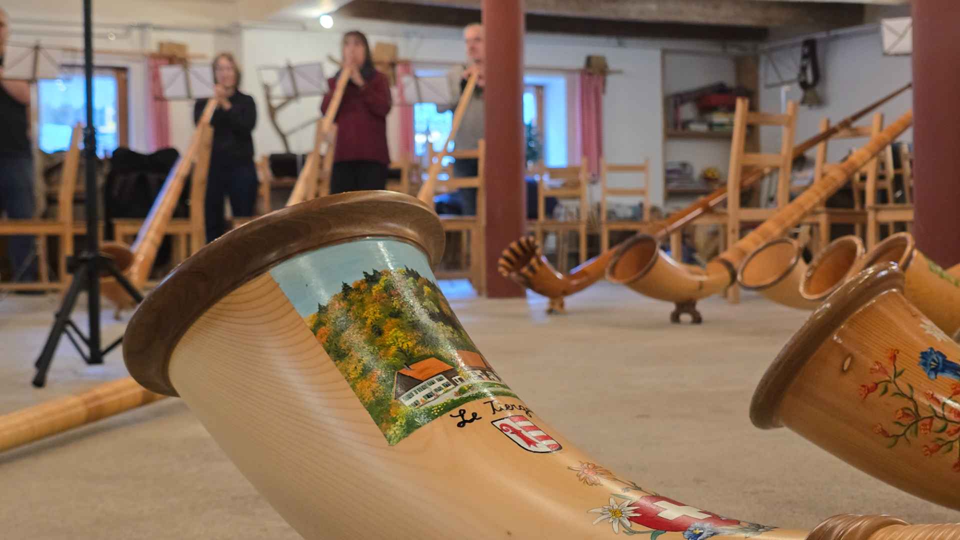 L'Echo du Vorbourg célèbre ses 20 ans cette année. Mais avant de présenter ses plus beaux morceaux, le groupe – qui comprend des joueurs de cor des Alpes venus de toute la Suisse et même d'Allemagne – s'est réuni pour répéter.
