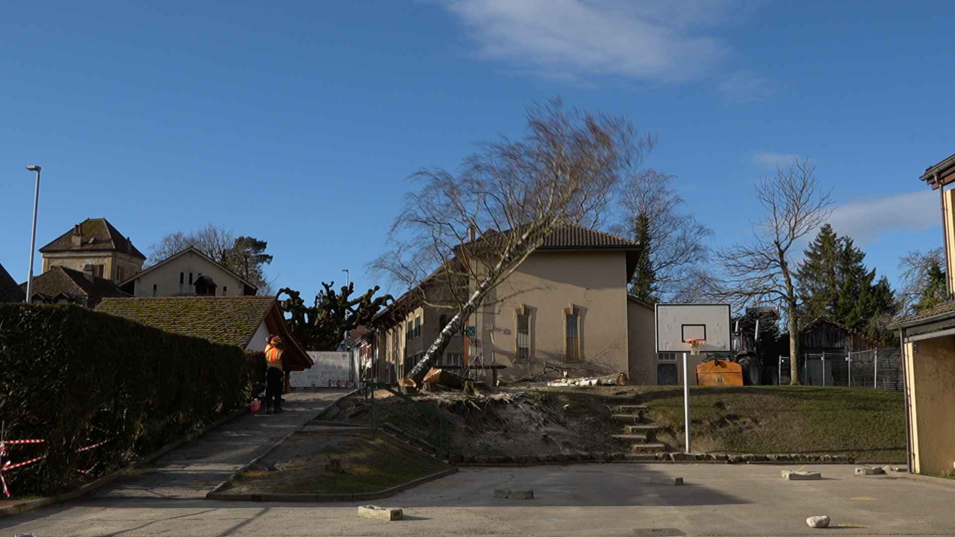 À Wavre, le chantier est lancé! Première étape : l’abattage de trois bouleaux sur la place du village, un passage obligé avant la transformation du site. D’ici fin mai, des gradins pour les fêtes, un préau en bois au toit végétalisé, des jeux repensés et au moins sept nouveaux arbres viendront verdir le cœur du village. L’objectif : créer un véritable lieu de vie, pour les élèves comme pour les habitants.