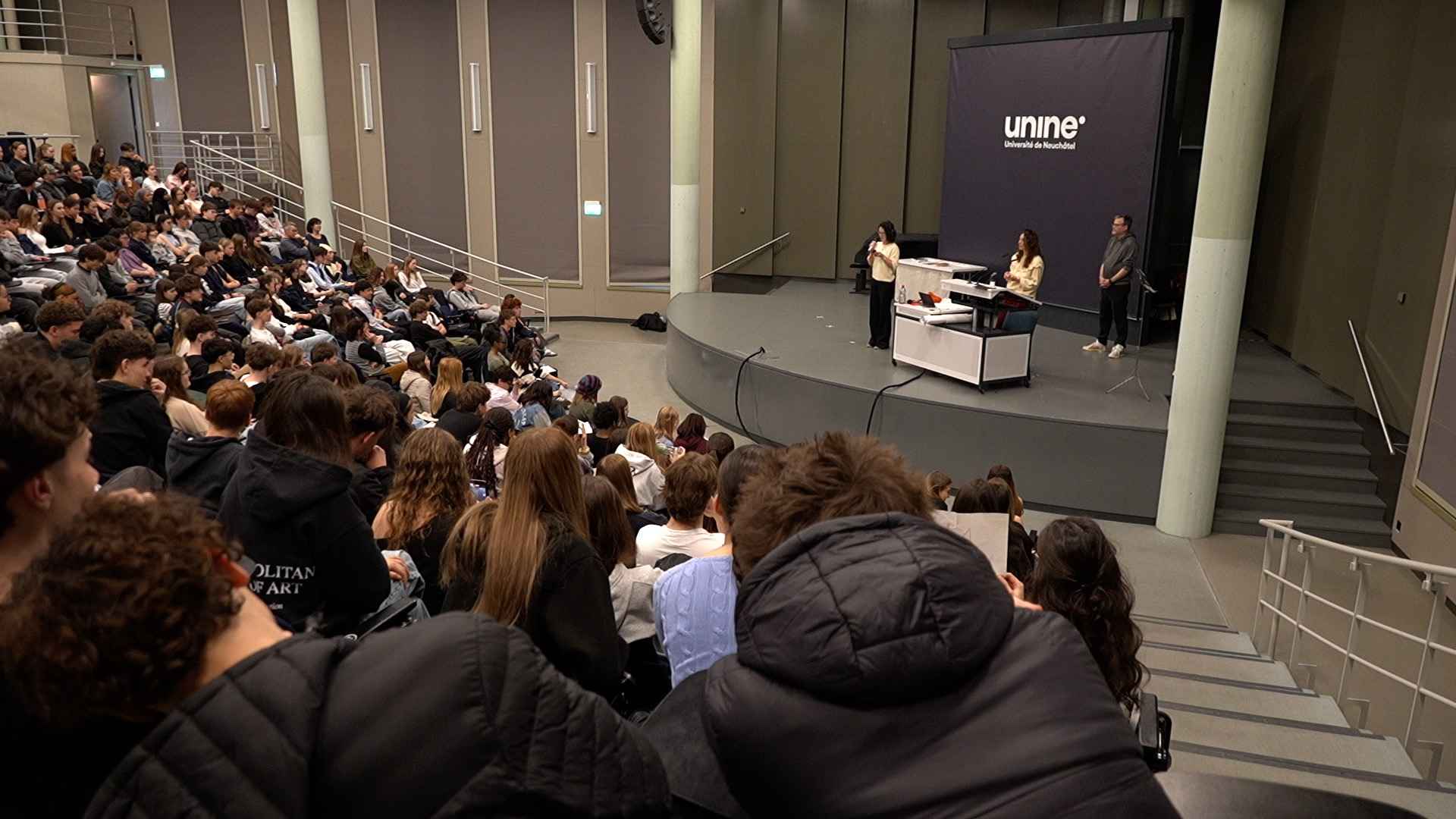 Le Lycée Jean-Piaget a organisé sa Semaine de l’Éloquence du 30 mars au 2 avril, rassemblant près de 250 élèves autour de la prise de parole. Ateliers de slam, improvisation et storytelling ont rythmé ces quatre jours, avec pour objectif de renforcer l’aisance à l’oral, la confiance en soi et la structuration des idées. Point d’orgue de l’événement : un tournoi de slam à l’aula de la Faculté des lettres de l’Université de Neuchâtel, où les élèves ont déclamé leurs textes devant un jury et leurs pairs.
