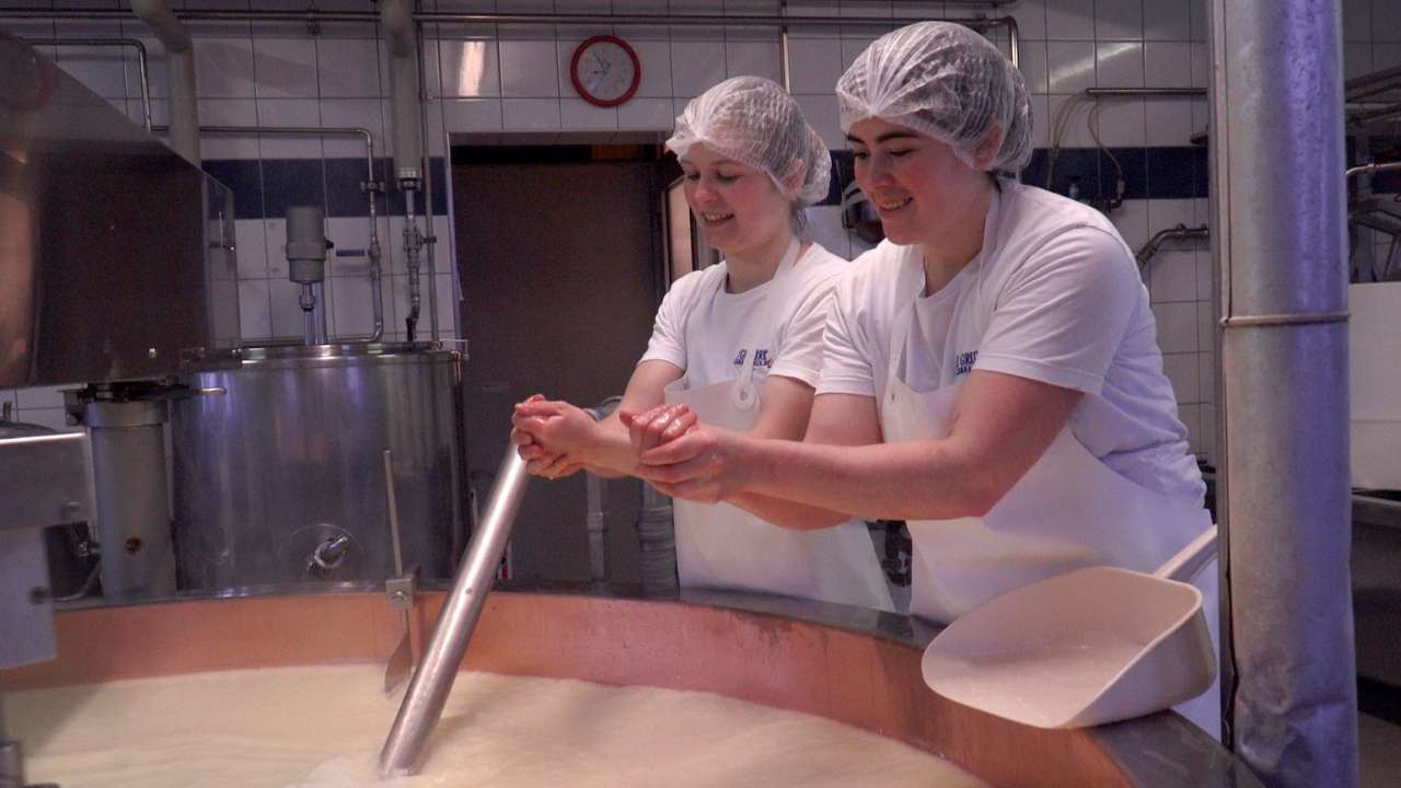 Il était une fois un fromage mythique, le Gruyère nous partage quelques-uns de ses secrets. Daniela Weber est la seule femme de Suisse à produire du Gruyère AOP dans sa propre fromagerie. Au quotidien, elle est secondée par Dominique Heuberger. Les deux jeunes femmes apprécient leur collaboration. Elles apprennent l'une de l'autre et partagent leur savoir-faire.