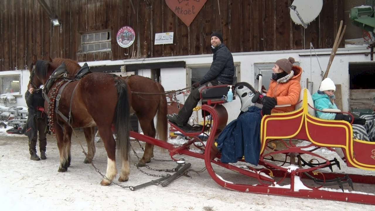 C'est comme monter dans le traîneau du Père Noël, ou presque. A Mont-Crosin, dans le Jura bernois, la famille Zürcher propose une balade en traîneau dans des paysages enneigés. Cette activité cartonne cet hiver. On embarque pour un tour d'une heure, le tout tracté par des chevaux Franches-Montagnes.