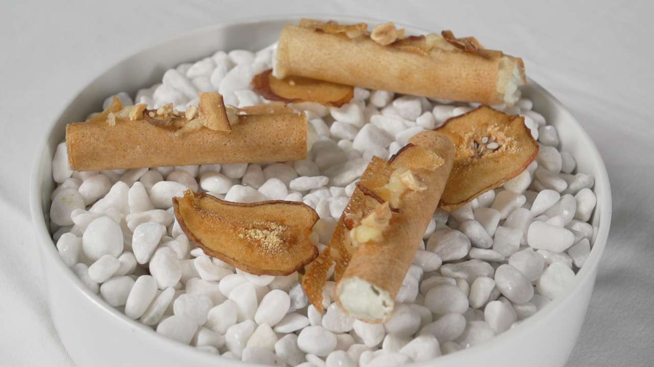 Cigares de Bleuchâtel à la poire et aux noisettes chez Federico Bertozzini