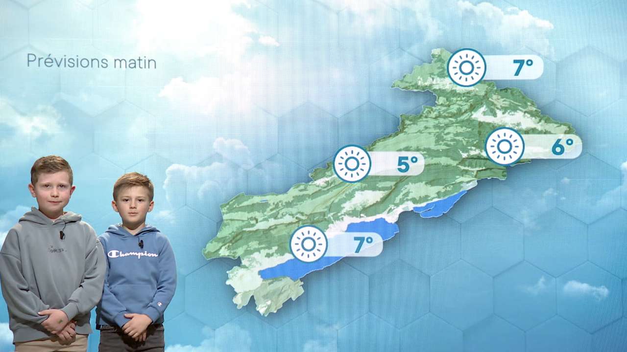 Le mercredi c'est le jour des enfants et le moment pour eux de faire leurs premiers pas devant une caméra de télévision. Ce mercredi, la Météo des Enfants vous est présentée par Flurin et Alexis. La Météo des Enfants, c'est pour tous les enfants âgés de 8 à 13 ans. en provenance du Jura, Canton de Neuchâtel, Jura-Bernois ou le Nord-Vaudois. Inscription par mail à : meteo@canalalpha.ch