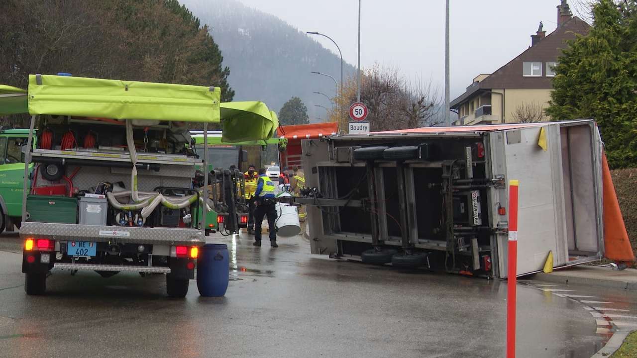 Un camion renverse sa cargaison de bidons à Boudry