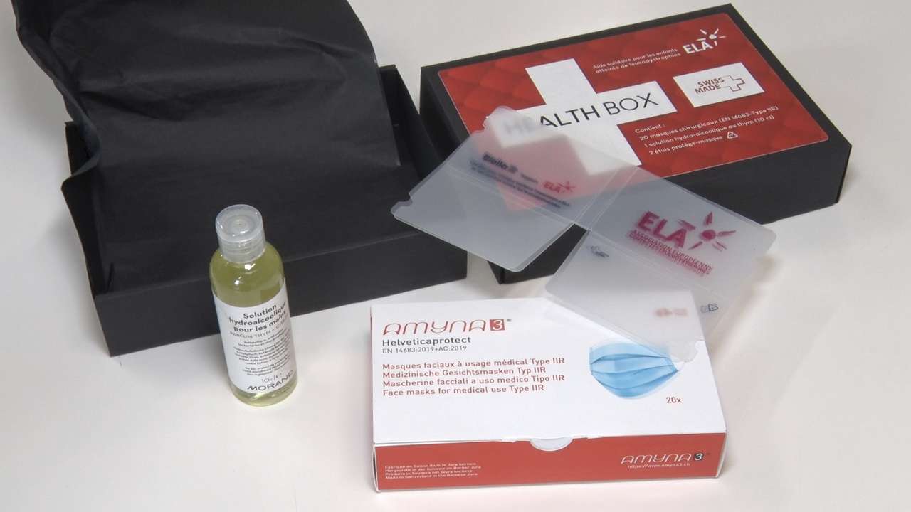 L'association ELA Suisse, qui oeuvre contre la leucodystrophie, devait trouver une solution pour pallier le manque d'événement de collecte de fonds. Ainsi est née la "Health box", un coffret comprenant du gel hydro-alcoolique, une boîte de masques et deux étuis protège-masque. L'association a conçu cette boîte avec 3 entreprises suisses, qui fournissent son contenu. Pour les masques, c'est Amyna 3 à Corgémont qui a répondu à l'appel d'ELA.