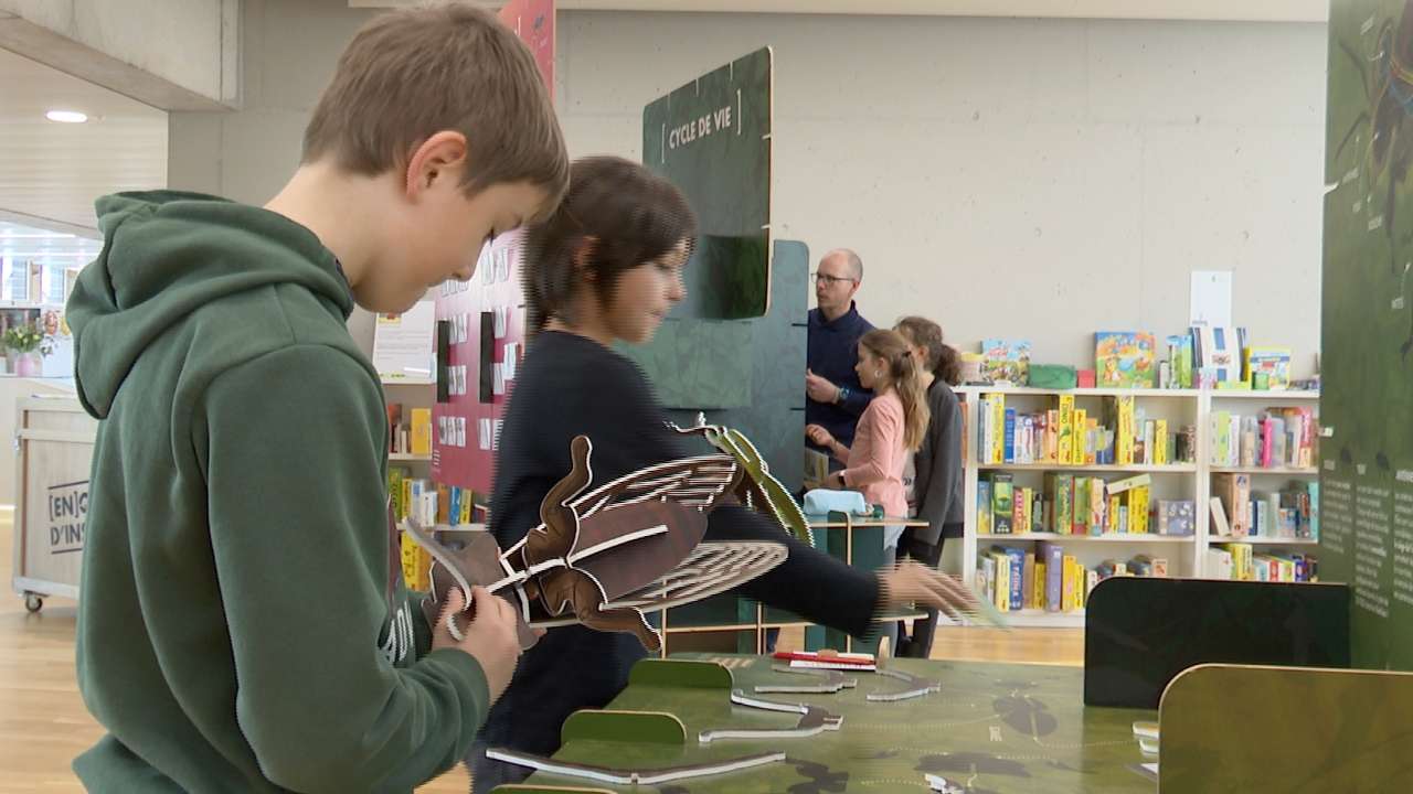A quoi reconnaît-on les insectes? Que mangent-ils? Comment communiquent-ils? Les enfants se posent souvent ces questions en observant ces petits animaux. Ce matin, des écoliers de 6H de Develier ont trouvé la plupart des réponses à leurs interrogations en visitant l'exposition [En]quête d’insectes, à la médiathèque de la HEP-BEJUNE de Delémont. Conçue pour un large public, cette exposition se déplacera ensuite à La Chaux-de-Fonds dès le 17 mai. Elle s'adresse d'abord aux écoles, mais elle est aussi ouverte au public, la semaine, de 15h30 à 17h30, et le mercredi après-midi.