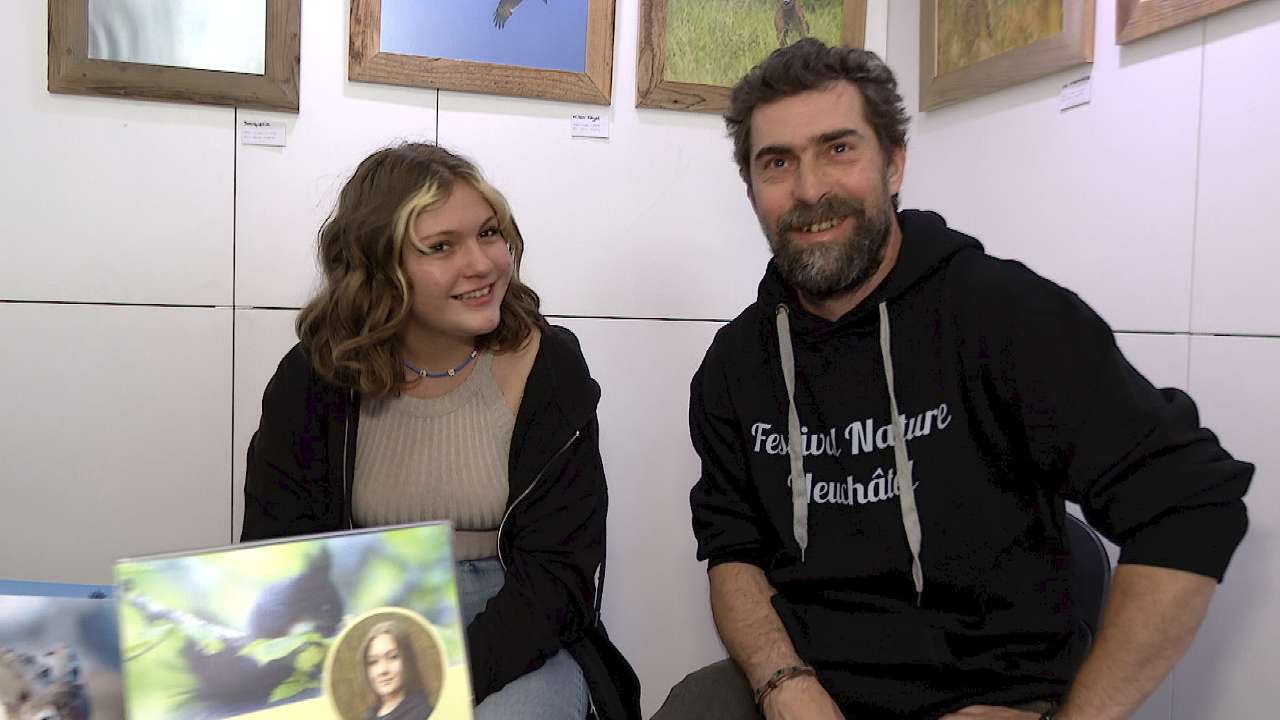 La 2e édition du Festival Nature de Neuchâtel rassemblait le travail de 14 photographes et cinéastes animaliers, durant tout le week-end. Nous y avons rencontré la jeune Axelle Bays, 14 ans, dont le virus pour la photo animalière lui a été transmis par son père, Martial. Mais tous n'ont pas la chance d'avoir reçu cette passion en héritage. C'est le cas notamment de Fabien Wohlschlag, parrain de l'exposition, plus connu sous le nom de Fabwildpix sur sa chaîne web. Il aurait aimé pouvoir bénéficier des mêmes conseils qu'il distille désormais sur Internet, à une époque où les réseaux sociaux n'existaient pas.
