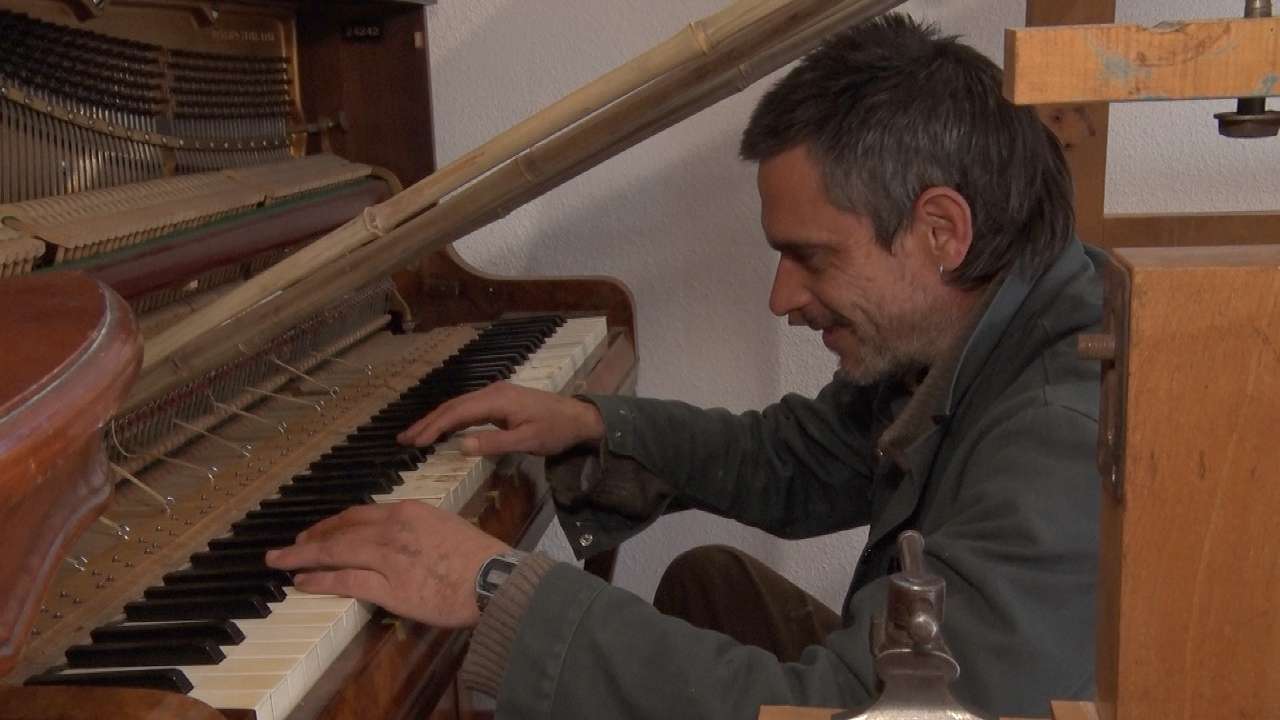 Jouer du piano tout en peignant, c'est la matrice qu'a conçue l'artiste pluridisciplinaire Joseph Martin dans son atelier à Grandson. Construite avec les moyens du bord, la matrice permet de créer une peinture avec une certaine liberté. Le résultat final est toujours inattendu. Nous nous sommes rendus dans son atelier, où il a mis en route la matrice.