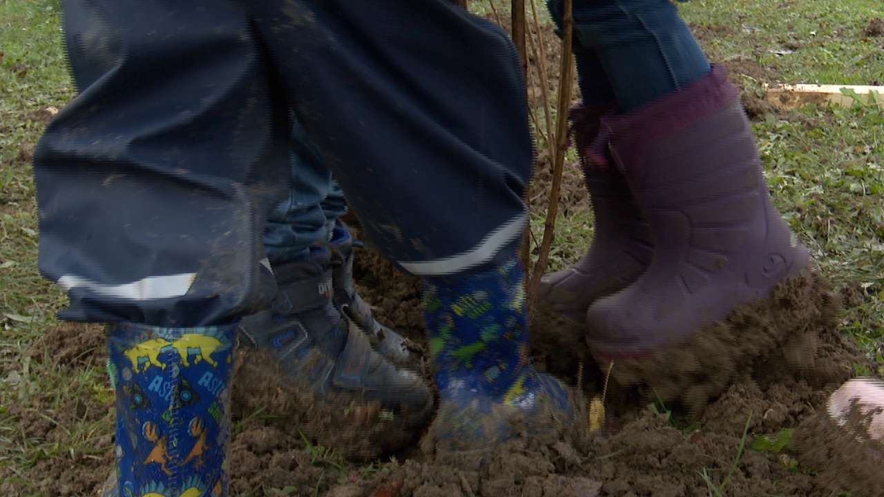 Depuis quelques mois, les écoliers de Glovelier aménagent leur cour. «Quand l'école redevient buissionnière» est un projet d'aménagement dans le but de sensibiliser les élèves à la biodiversité et leur offrir un espace de découverte. Ce matin, les élèves de l'école enfantine plantaient différents arbres, encadrés par des enseignants et des professionnels.