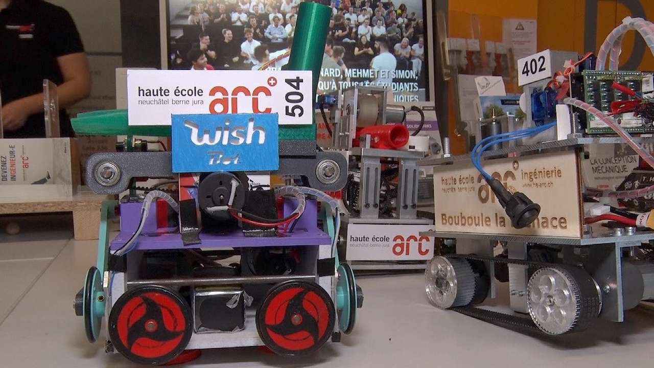Les étudiants de la HE-Arc domaine ingénierie présentaient leurs projets au public, samedi, à Neuchâtel, lors des portes ouvertes. L'enjeu est de taille pour la haute école. Le nombre d'inscription a baissé de 30% depuis 2019 et l'essentiel du recrutement se fait durant cette journée. Une centaine de visiteurs sont venus découvrir les différentes inventions.