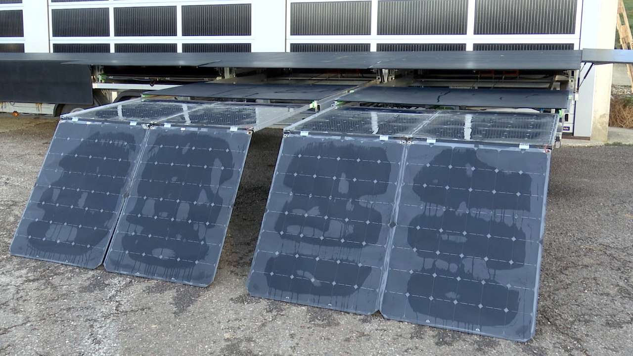Jean Oppliger a passé de nombreuses heures à concevoir une remorque solaire XXL, puisqu'elle possède 100 mètres carrés de panneaux solaires, soit la surface d'une maison familiale! Elle peut servir pour de nombreuses applications. L'inventeur, du Cerneux-Veusil, nous la présente.