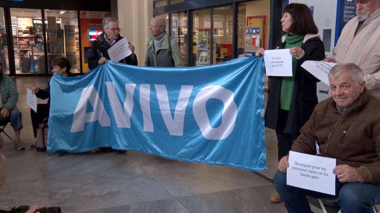 Les gares sont-elles adaptées aux personnes âgées? Pour la section chaux-de-fonnière de l’AVIVO, l’association de défense et de détente des retraités, la réponse est clairement non. Manque de places pour s’asseoir, manque d’endroits pour poser ses sacs, les griefs sont nombreux. Cet après-midi, ils ont donc manifesté à la gare de La Chaux-de-Fonds pour faire part de leur mécontentement.