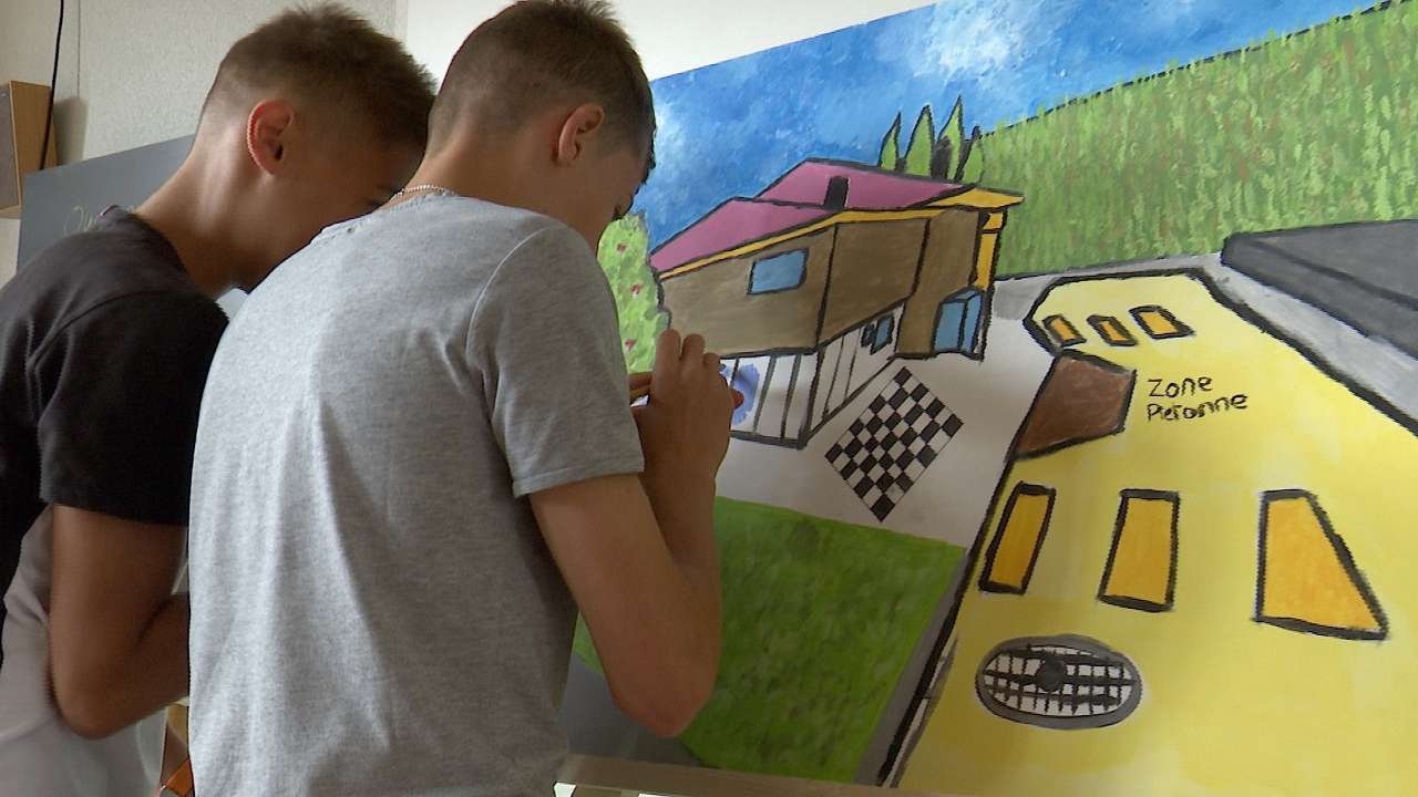 A quoi ressemble une rue idéale? Les élèves de 10H de Tramelan tentent, en peinture, de répondre à cette question posée par le Parc Chasseral. Depuis lundi, la soixantaine de jeunes réalisent 8 fresques qui seront ensuite utilisées par la commune et le Parc Chasseral afin d'aménager certains espaces. L'action s'inscrit dans le projet "Traverses de Tramelan" qui doit redéfinir le village en termes de paysage, mobilité douce et biodiversité.