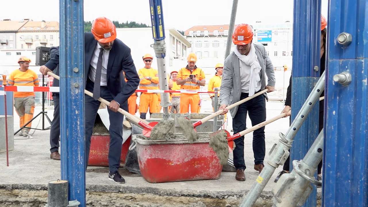 Les travaux de démolition du Grand-Pont se sont déroulés comme prévu à La Chaux-de-Fonds. Si les automobilistes doivent prendre leur mal en patience encore un petit moment, le chantier, lui, va de l’avant. Les médias étaient d’ailleurs invités au pied du futur pont ce vendredi matin. Après la démolition qui s’est déroulée entre mars et juin, la première pierre symbolique a pu être posée aujourd’hui. Armées d’une pelle, les autorités ont enterré une capsule contenant des documents symboliques, afin de marquer ce jour historique pour la Métropole horlogère.