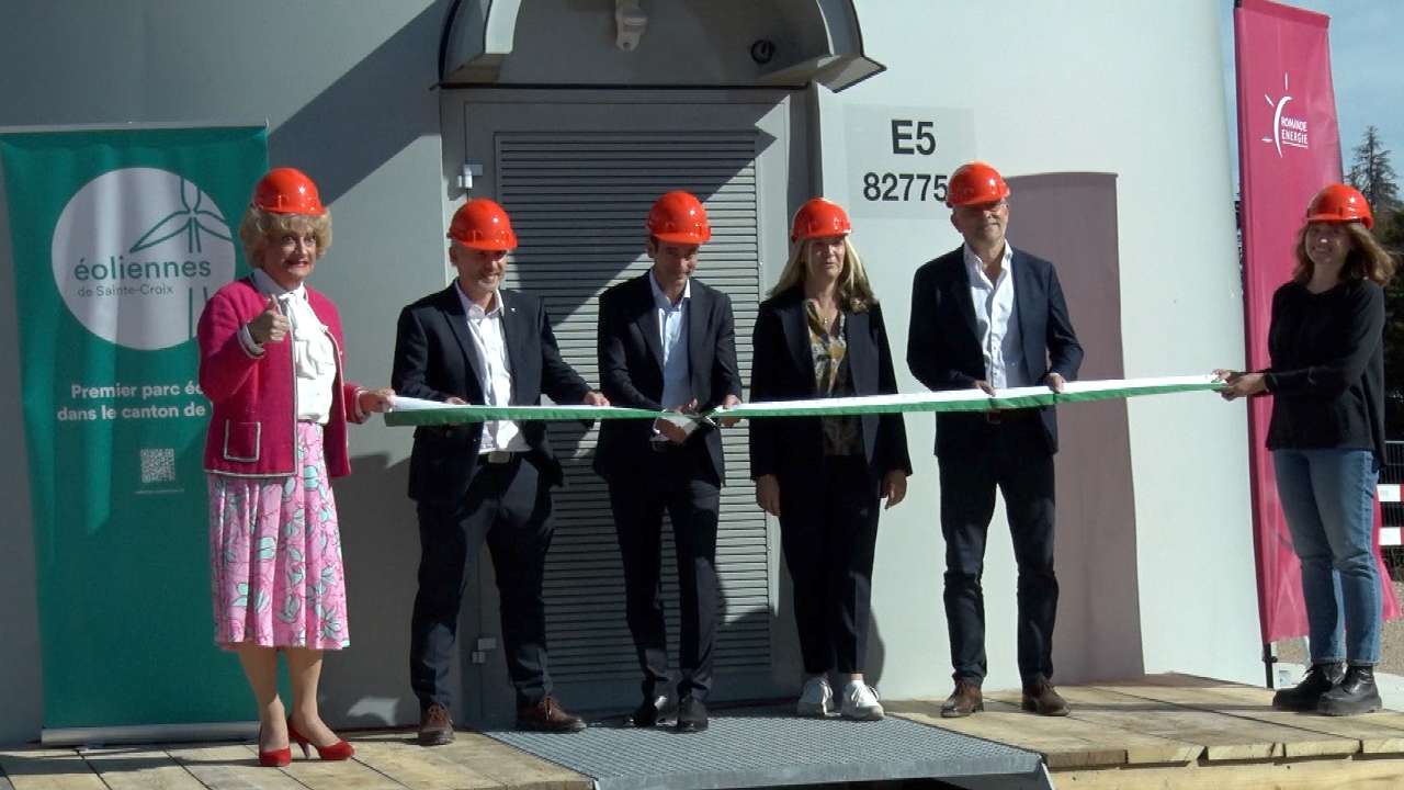 Sainte-Croix a inauguré ce matin, le premier parc éolien du canton. Il aura fallu 25 ans pour que ce projet aboutisse. Chiffrées à CHF 43 millions, ces six éoliennes produiront 22 millions de kilowattheures, soit la consommation du village et de ses industries. Actuellement, elles ne sont pas encore toutes en fonction. Le parc tournera complètement d'ici fin novembre.