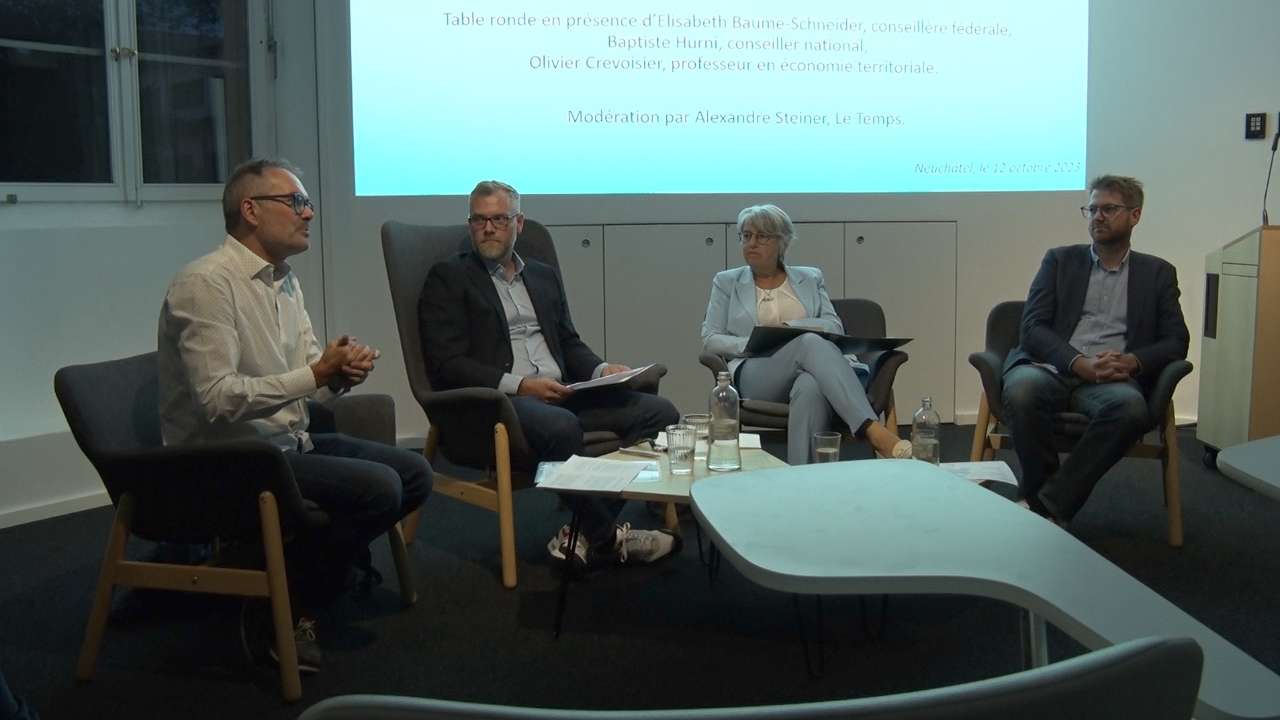 Quelle place pour l’Arc jurassien dans la politique suisse? Cette question a fait l’objet d’une table ronde hier soir, au Musée d’histoire naturelle de Neuchâtel. Organisée par le Parti socialiste neuchâtelois, cette table ronde a pu compter sur une invitée d’honneur. La conseillère fédérale Elisabeth Baume-Schneider était présente pour débattre sur cette thématique, aux cotés du conseiller national Baptiste Hurni, et du professeur d’économie territoriale à l’Unine, Olivier Crevoisier.