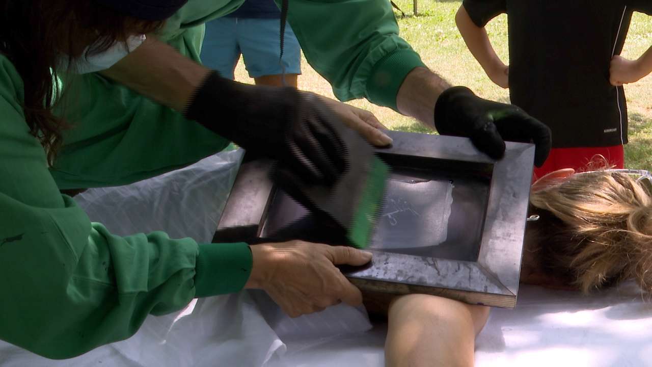 En partenariat avec le Centre de Création Helvétique des Arts de la Rue, la commune de Milvignes a accueilli Joan et Cie pour une animation "Body Print", cet après-midi au Bunker d'Auvernier. Grâce à la technique de sérigraphie, un certain Docteur Doctor a imprimé des tatouages éphémères sur le corps des baigneurs. Cette animation précédait le concerto musical pour acrobate "Boys Band Baroque". L'objectif du CCHAR est de promouvoir les artistes suisses, ainsi que de faire découvrir au public régional de nouveaux concepts.