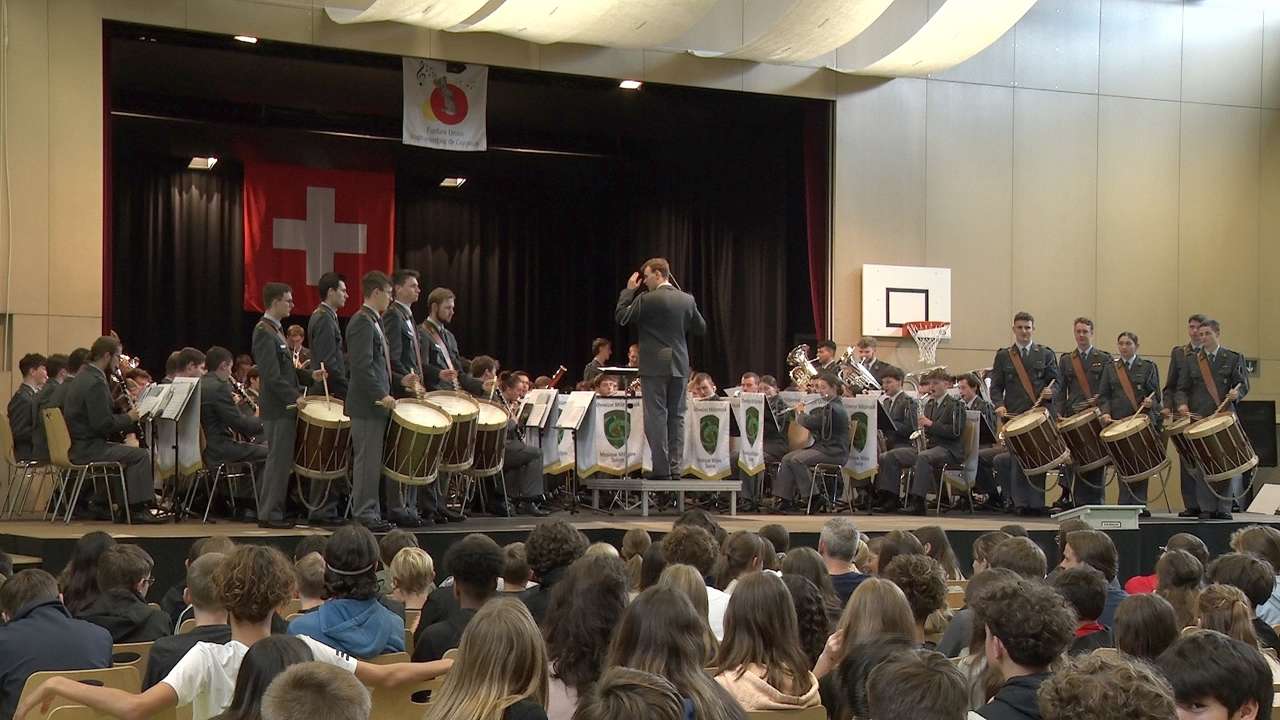 90 jeunes recrues de la musique militaire suisse ont pris leurs quartiers aujourd’hui dans la halle de gym à Courroux. Au programme de leur journée, présentation des instruments aux élèves de l’école secondaire du Val Terbi et concert ce soir. La fanfare de l’école de recrues de l’armée mettra en lumière les talents de ses musiciens.