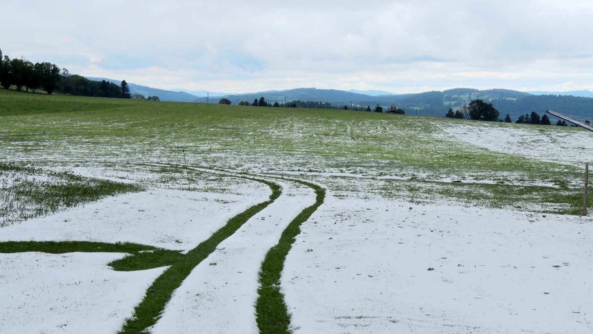 Plus de 10 centimètres de grêle sont tombés en une vingtaine de minutes hier soir aux Bois. Michaël Rebetez, agriculteur installé dans le domaine de Chez Chailat, a observé ce phénomène inhabituel, plutôt printanier et donc exceptionnel en été. Le torrent de grêle n’a d’ailleurs touché que trois maisons, ce qui rend l’épisode encore plus singulier.