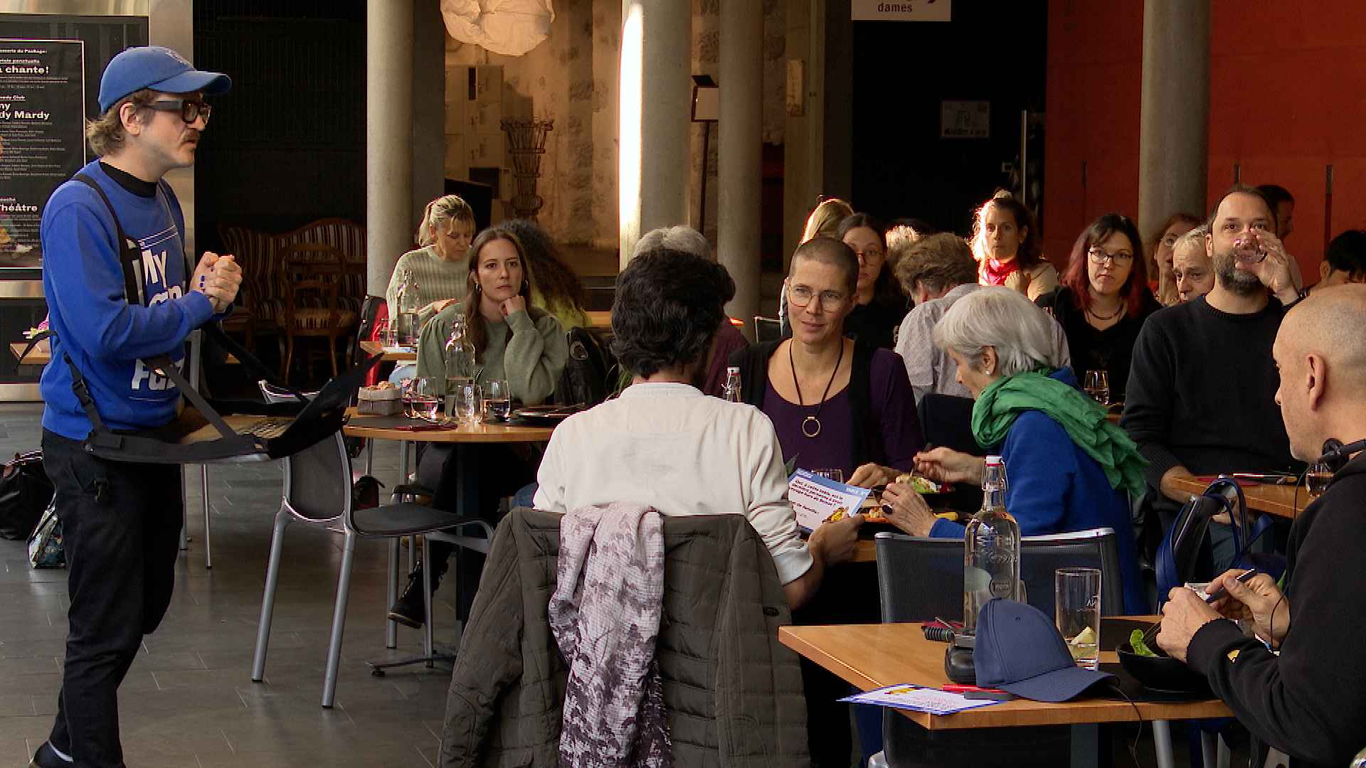 Ce midi, au Théâtre du Passage à Neuchâtel, la pause de midi devient spectacle avec la 13e saison de Midi Théâtre. Cette année, on combine repas et performance. Le public est installé à table dans le brasserie du théâtre avant de vivre un spectacle express. Les comédiens embarquent les convives dans une création en direct. Nous étions sur place.