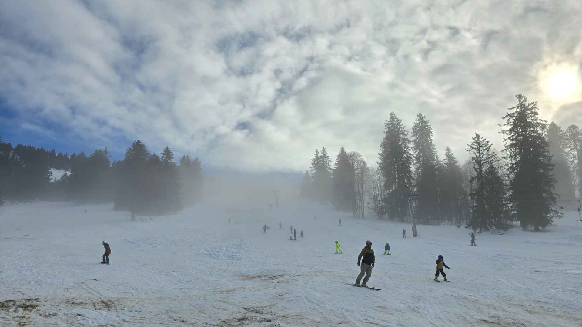 En ce dernier week-end de novembre, la station des Bugnenets-Savagnières a ouvert quelques pistes de ski alpin. Samedi, de nombreuses familles ont profité du beau temps pour glisser... avant que la pluie ne rende les pistes impraticables.