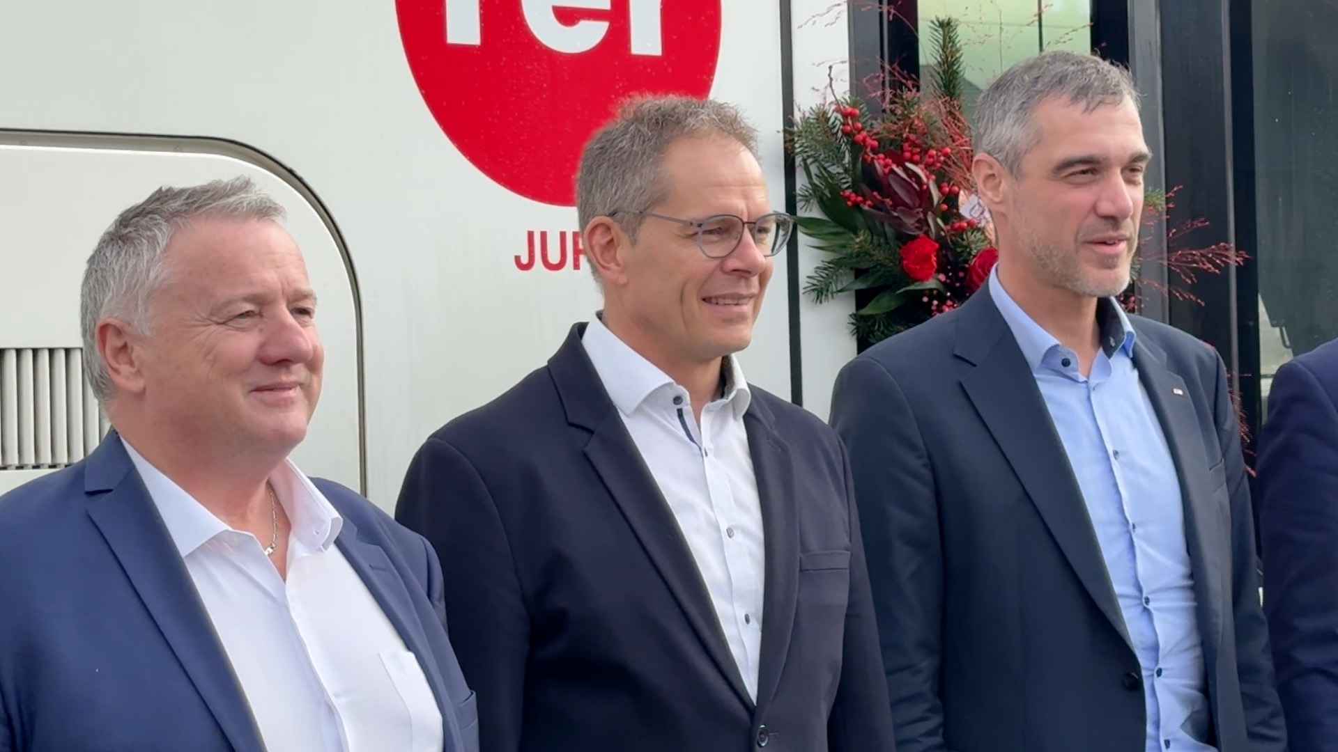 La présentation de l’horaire 2026 des transports jurassiens a marqué, cet après-midi à Porrentruy, le lancement officiel du RER Jura par les trois « David » : Eray, Fattebert et Asséo. Le nouveau réseau proposera deux trains par heure entre Delémont, Porrentruy, Delle et Bonfol, tandis que les grandes lignes passeront à une cadence de 30 minutes entre Bâle, Delémont, Moutier et Bienne. Côté route, l’offre de bus MOBIJU sera réduite d’environ 9 %.