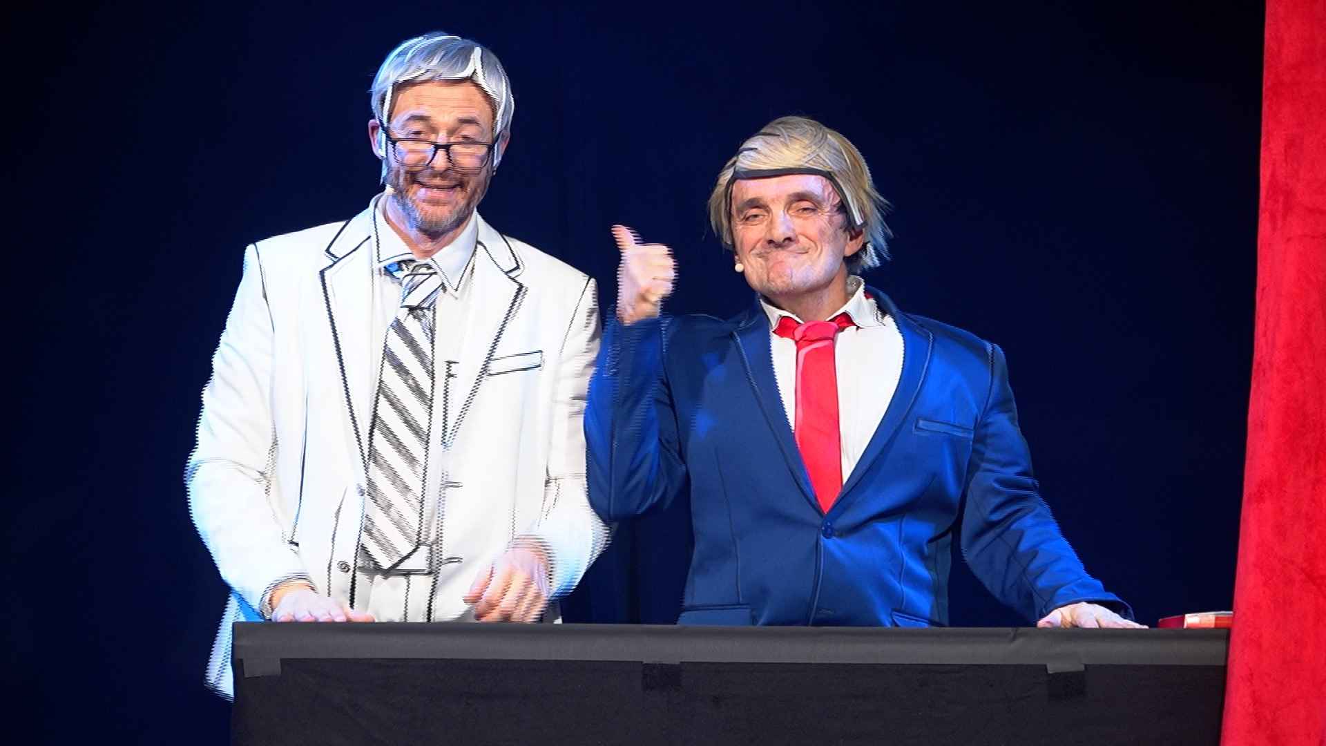 Donald Trump, Nicolas Sarkozy et Céline Vara étaient destinés à être moqué par la Revue neuchâteloise, ça n'a pas manqué. David Charles Haeberli et sa troupe se sont régalés avec l'actualité de 2025. L'accès interdit aux Français à la piscine de Porrentruy les a évidemment inspiré aussi. Mais la Grosse Bertha a eu droit à son hommage grâce à un concours de circonstance: Thierry Meury, malade, a manqué la première représentation, jeudi à Saint-Blaise, et les autres comédiens ont dû se démener pour que son absence passe inaperçue.