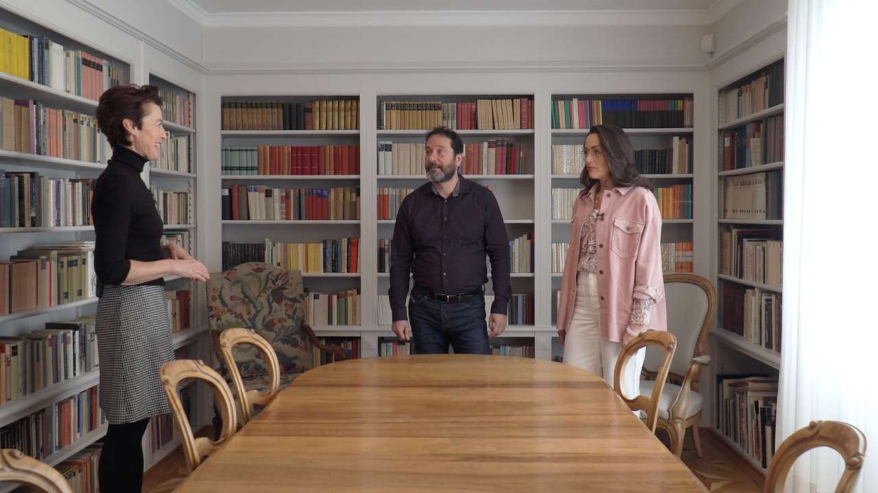 Friedrich Dürrenmatt a vécu près de 40 ans à Neuchâtel. A deux pas du rocher de l'Ermitage se trouvent les maisons où il s'était installé avec sa famille. Ce lieu de vie est devenu aujourd'hui un musée qui célèbre l'oeuvre littéraire et picturale de cet artiste à la renommée mondiale. Jennifer Sunier et Juan Diaz sont les visiteurs de ce jour. Ils sont reçus par la conservatrice du Centre Dürrenmatt Neuchâtel, Madeleine Betschart.