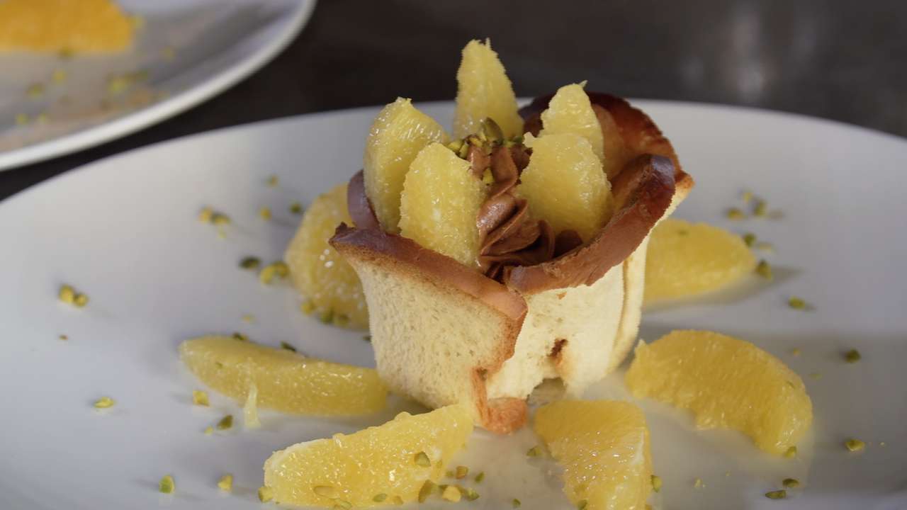 Nous sommes au Restaurant Les Six-Communes à Môtiers. Marianne Rohrer reçoit sa fille, Sophie Rohrer. Pour notre recette, nos deux cheffes proposent un dessert savoureux : une taillaule croustillante et sa mousse au chocolat accompagnée de filets d'orange.