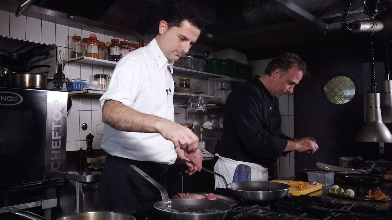 Nous sommes à la Bonne Auberge à Delémont. Joël Khalil reçoit Cédric Gigon. Nos deux chefs vont réaliser ensemble un plat automnal : un vol-au-vent au perdreau et son pesto, accompagné de plantes sauvages des Franches-Montagnes.